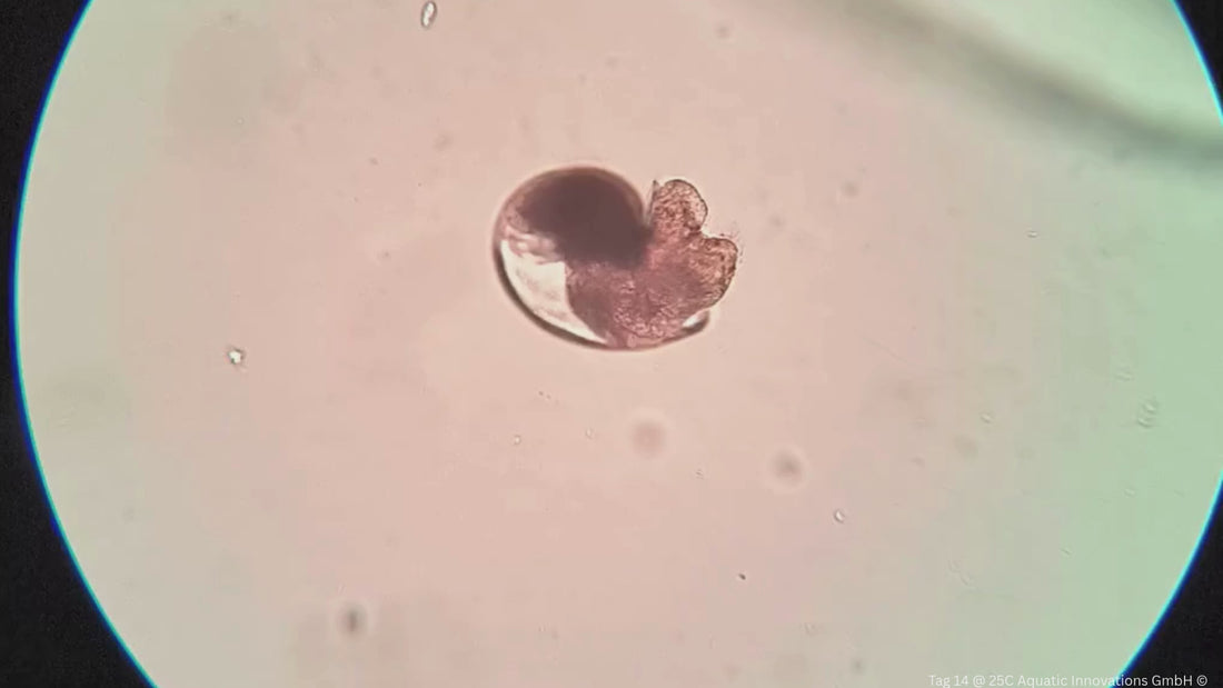 Die Berghia werden bei einer Wassertemperatur von 25°C etwa 10-14 Tage nach der Lieferung schlüpfen.